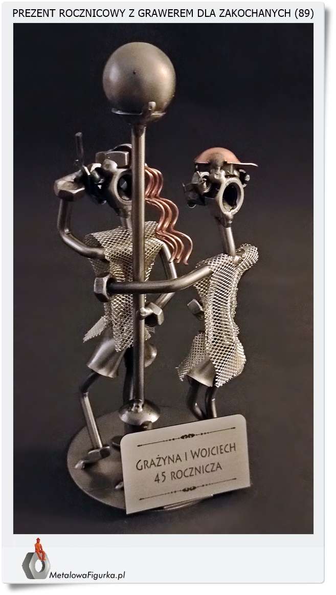 Śmieszna figurka z metalu jest udanym prezentem dla zakochanej pary narzeczonych.
