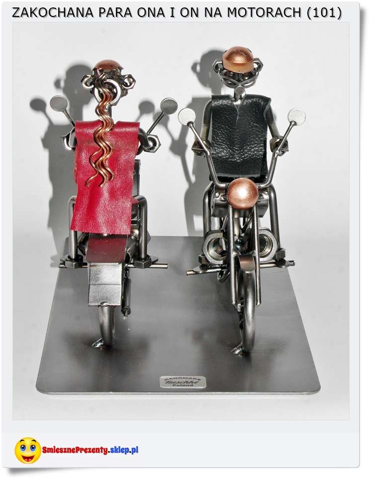 Metalowa statuetka dla dziewczyny i chłopaka na motorach