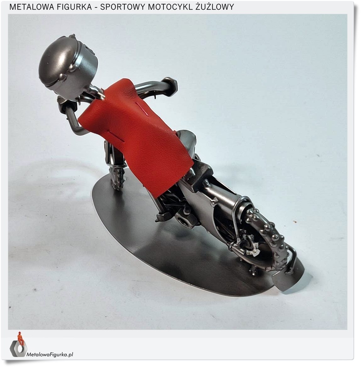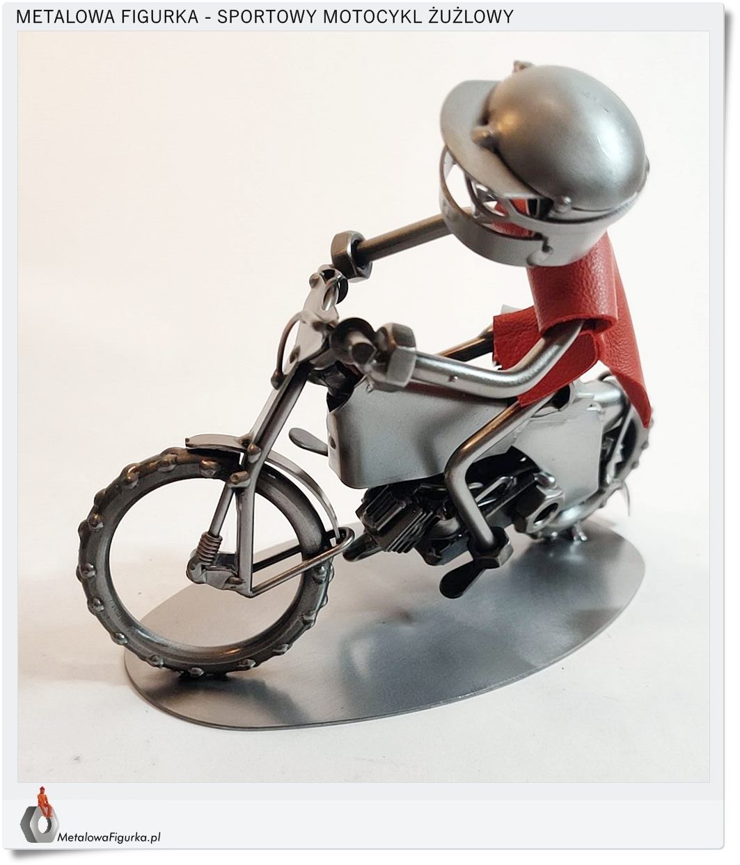 Ozdobna FIGURKA wykonana w całości z METALU jest ciekawą ozdobą na biurko chłopaka z zamiłowaniami do sportów motorowych.