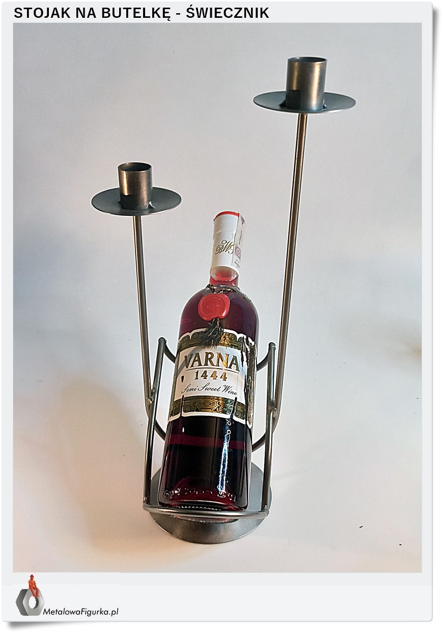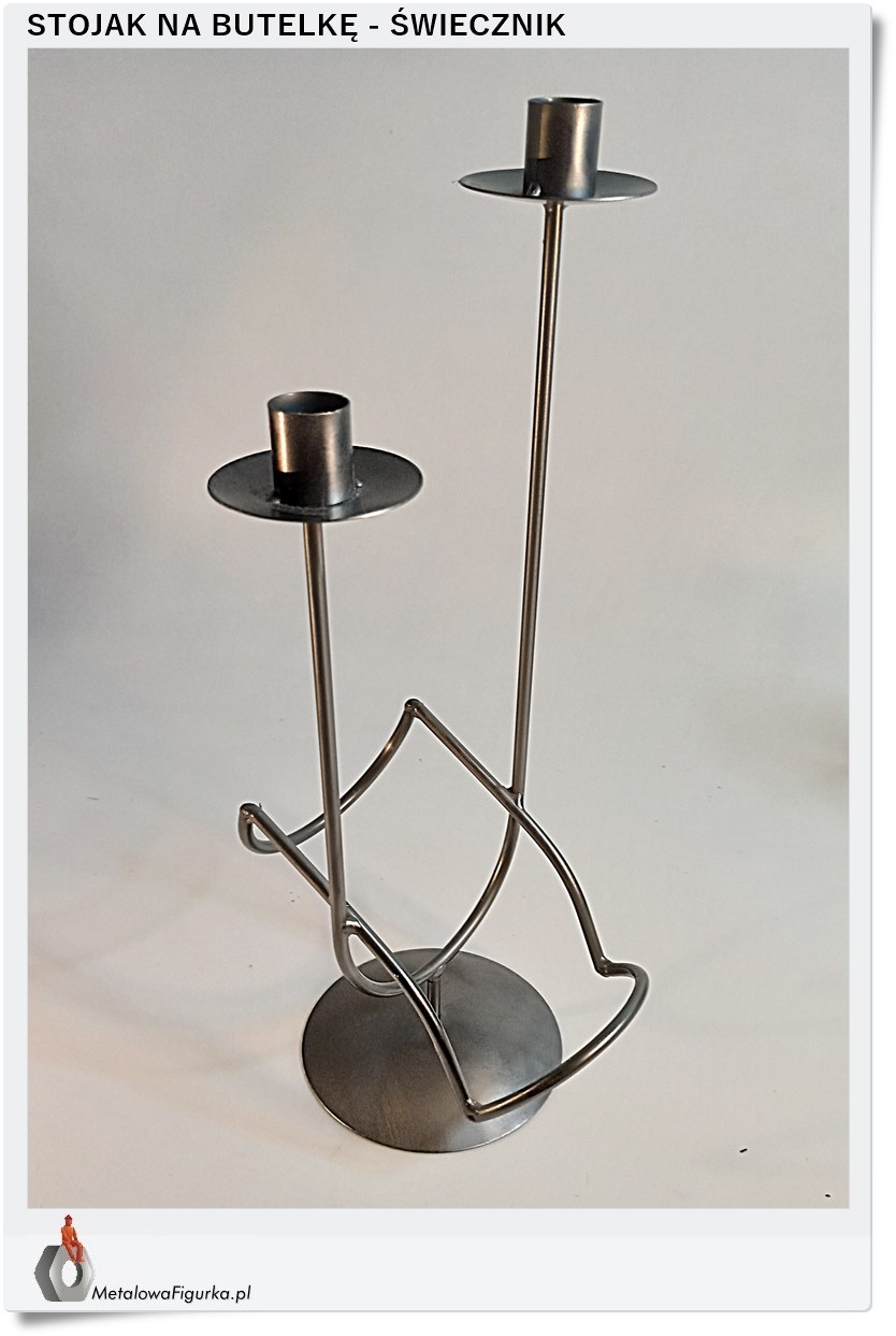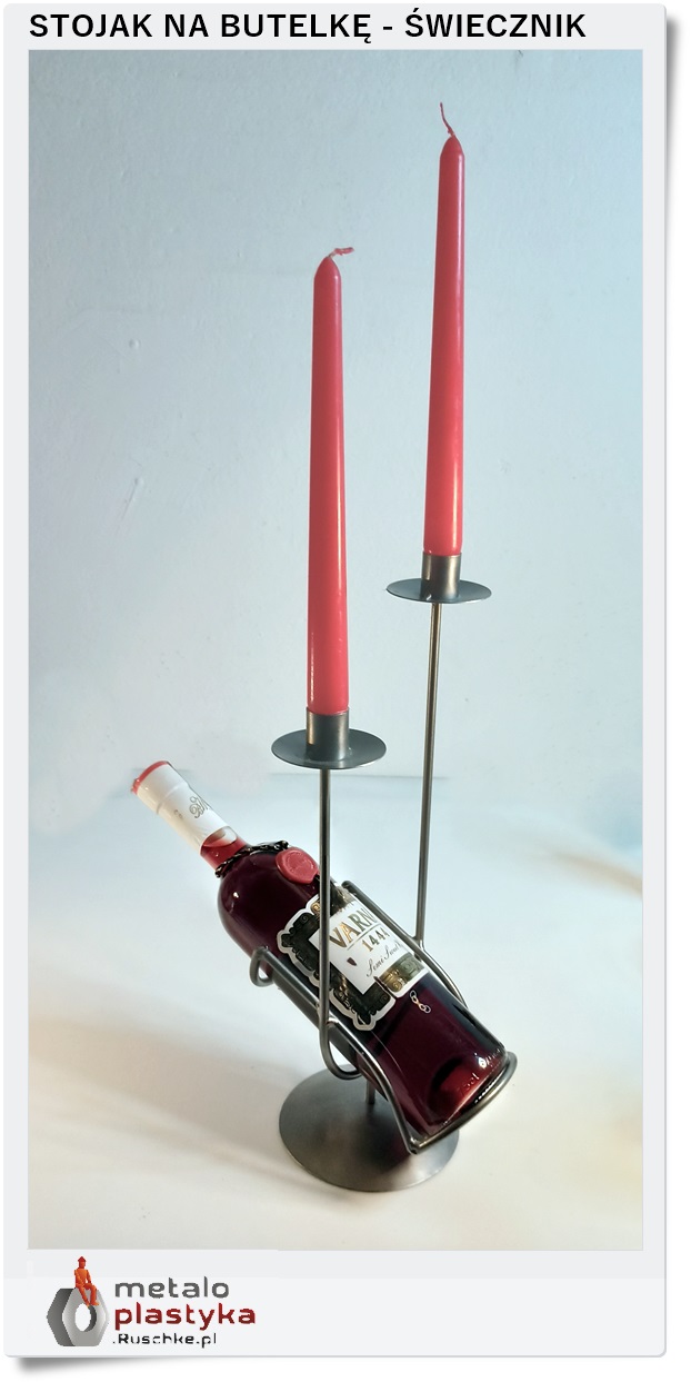 Ozdobny stojak na butelkę wina połączony ze świecznikiem.
