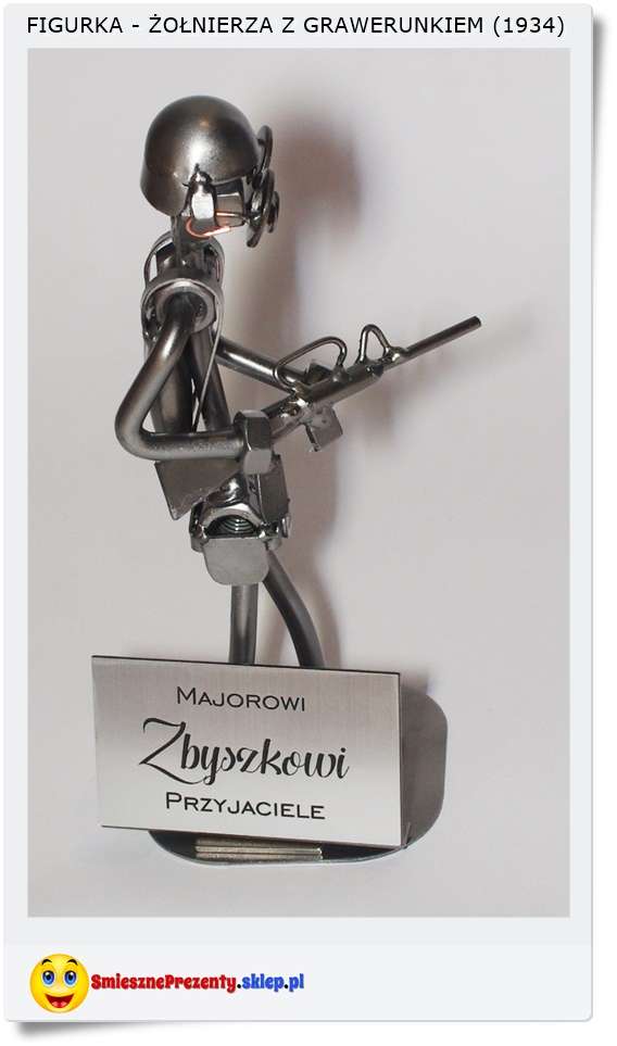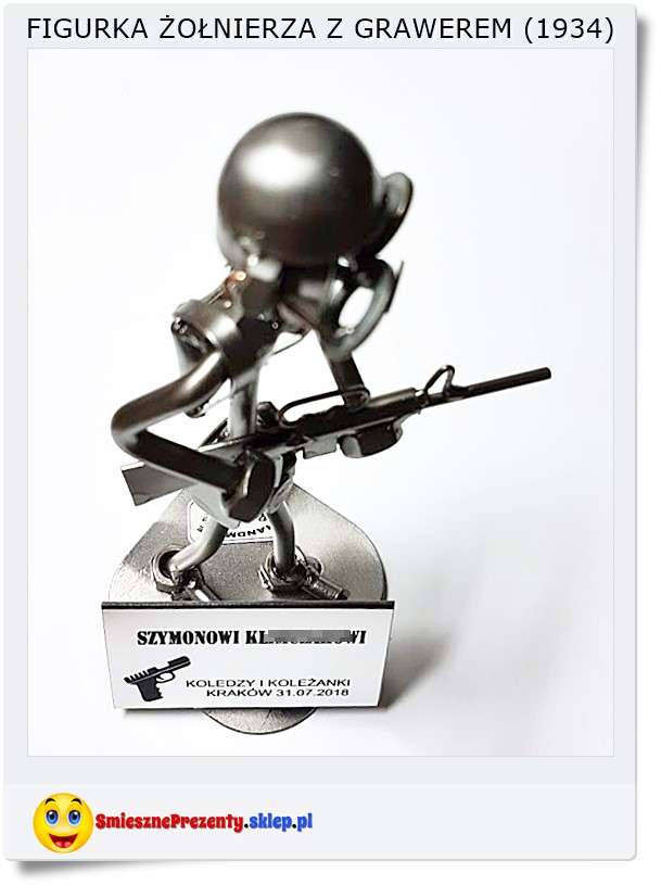 Dla kolegi Żołnierza śmieszna figurka z wygrawerowanymi życzeniami.