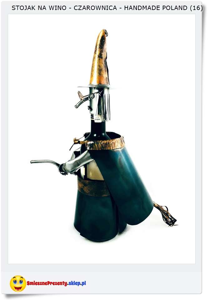 Na prezent dla koleżanki lub dziewczyny śmieszny stojak na Butelkę wina przedstawiający wizerunek "Czarownicy" Niepowtarzalny stojak polskiego rzemiosła artystycznego wykonany ręcznie z metalowych elementów takich jak, podkładki, druty, kawałki prętów i mosiężne blaszki itp... Prezent na imieniny lub urodziny !!!