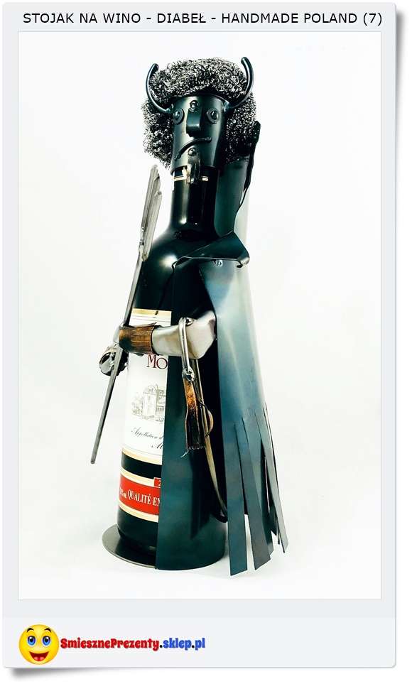 Diabelski stojak do wina na śmieszny prezent !!! Ciekawy jak "Z piekła rodem " stojak polskiego rzemiosła wykonany w pracowni rekodzieła zgodnie z projektem artysty plastyka z metalowych części takich jak, podkładki, druty, kawałki prętów i mosiężne blaszki itp... Fajny prezent na imieniny lub urodziny