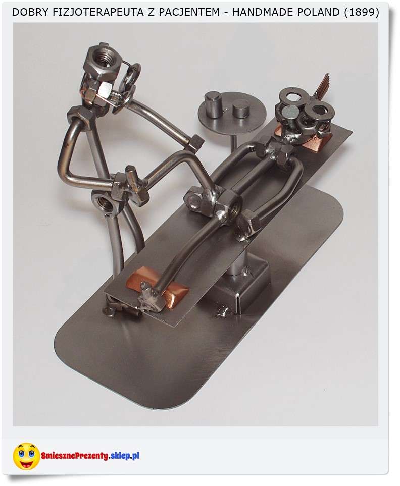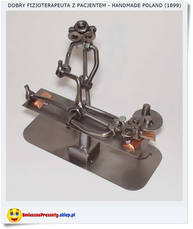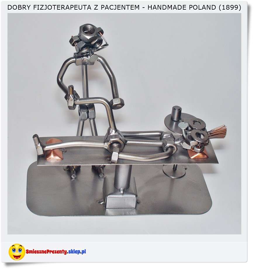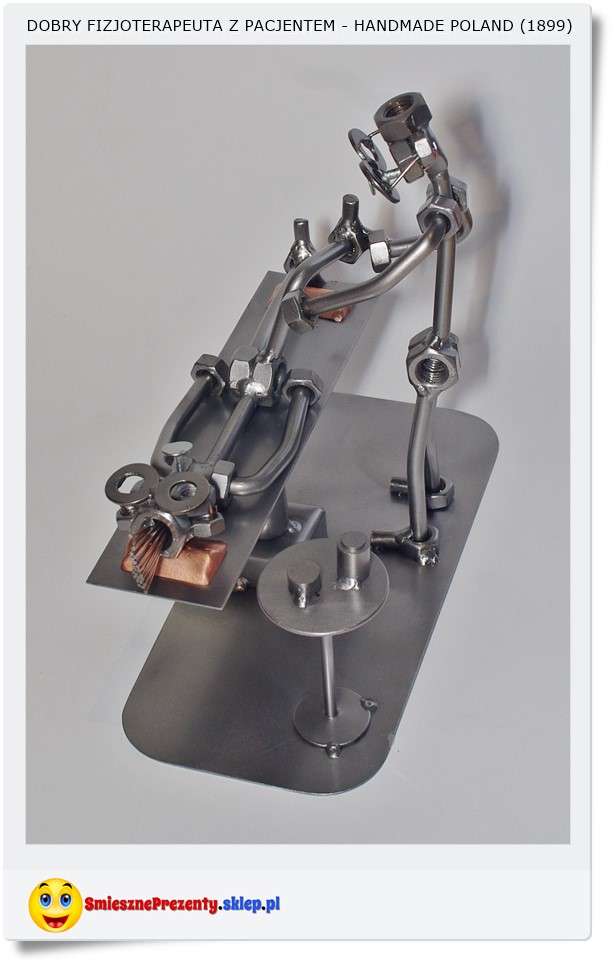 Polecam śmieszną metalową figurkę "Grzegorz Fizjoterapeuta" z pacjentem na łóżku do masażu....